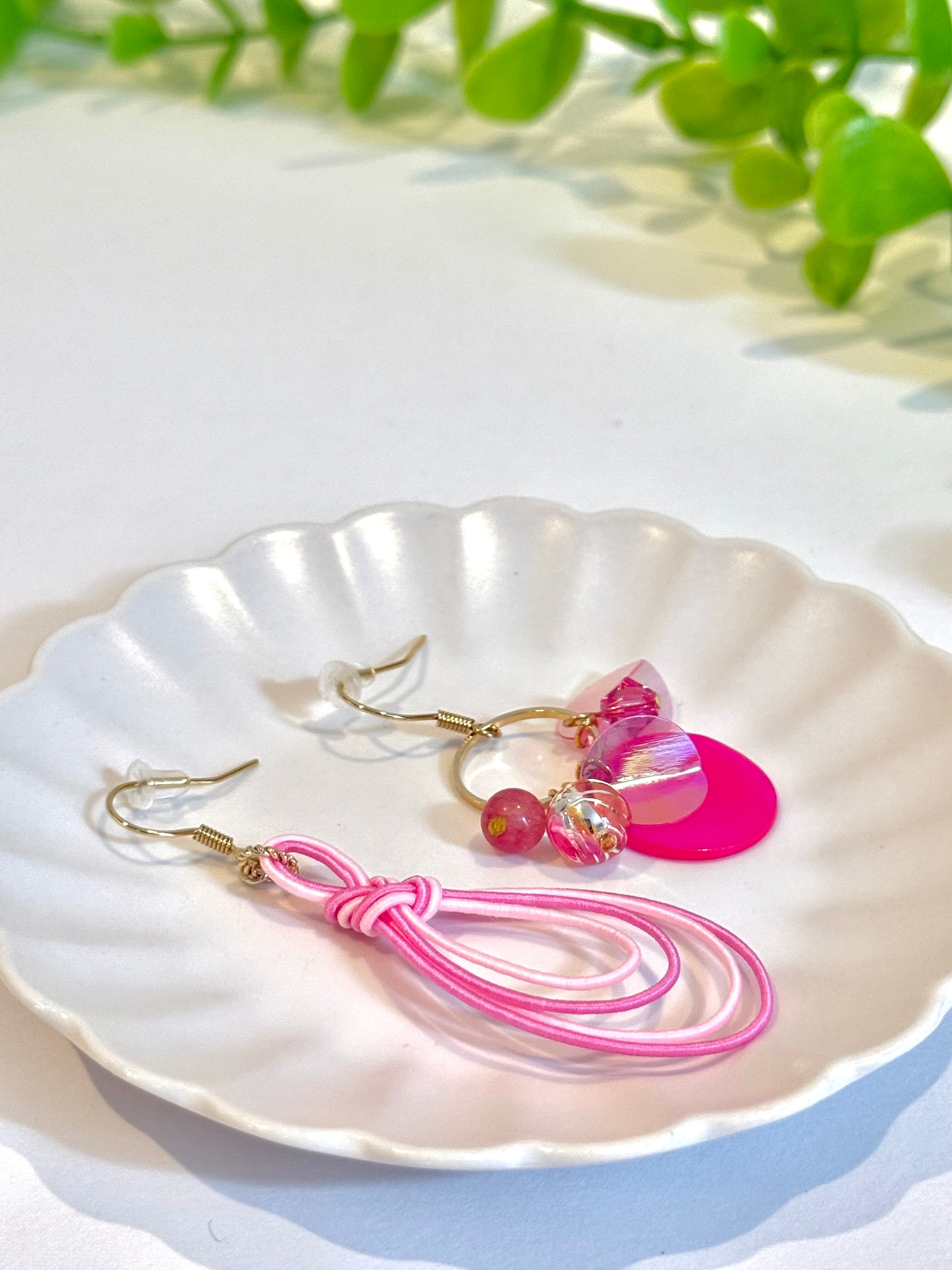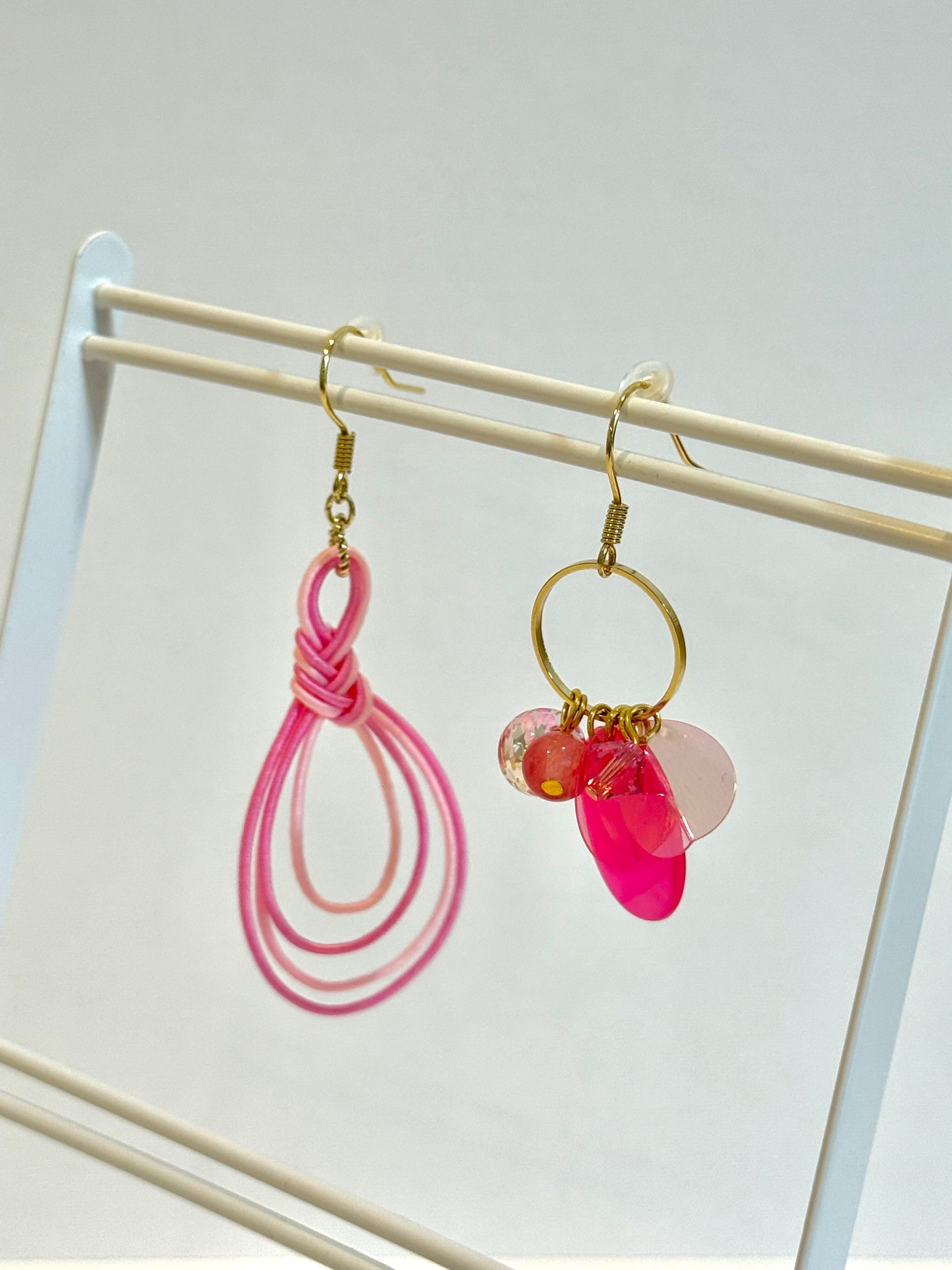 水引きアクセサリー・ピアス・ピンク【1点物】