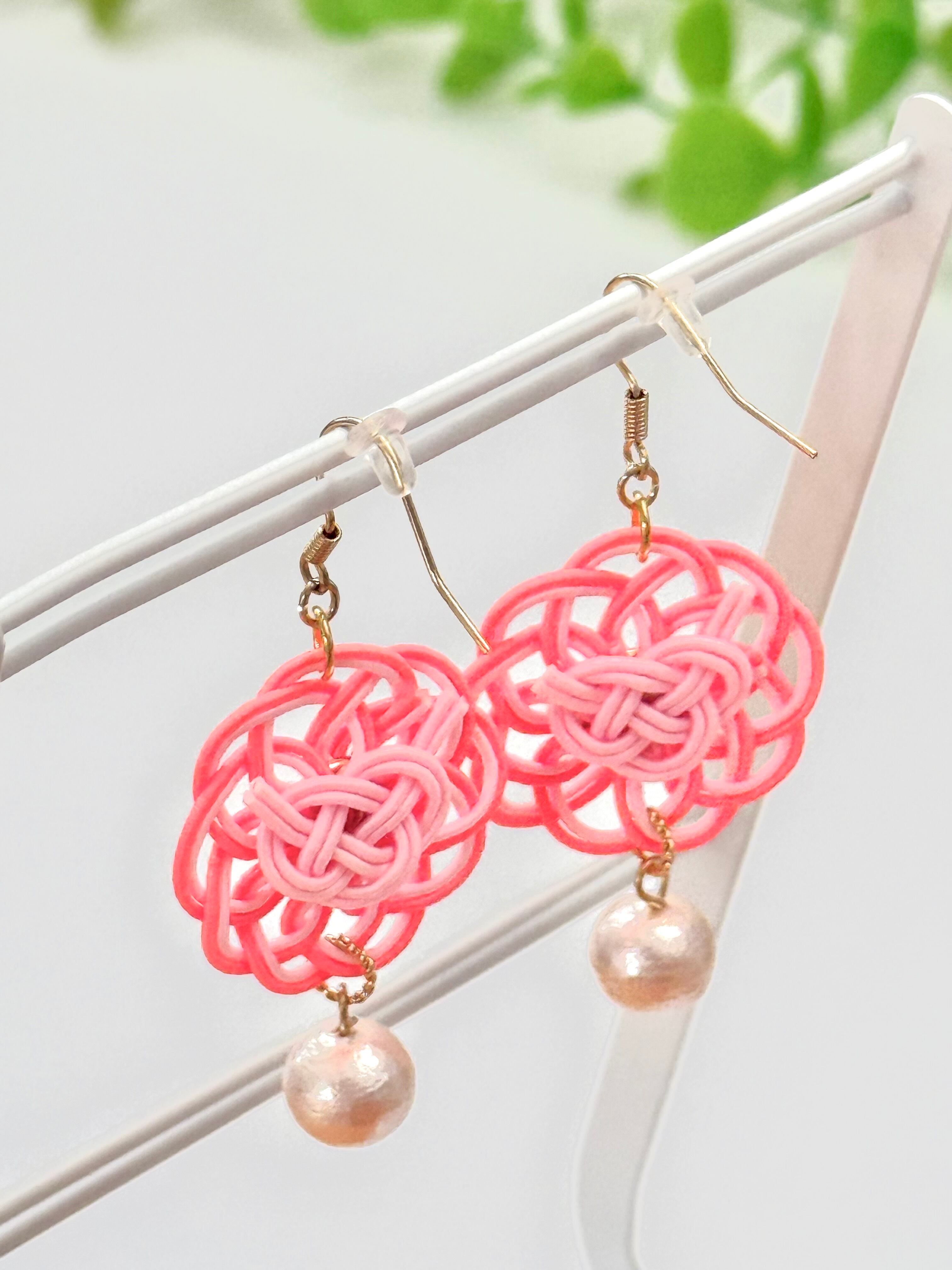 水引きアクセサリー・ピアス・ピンク【1点物】