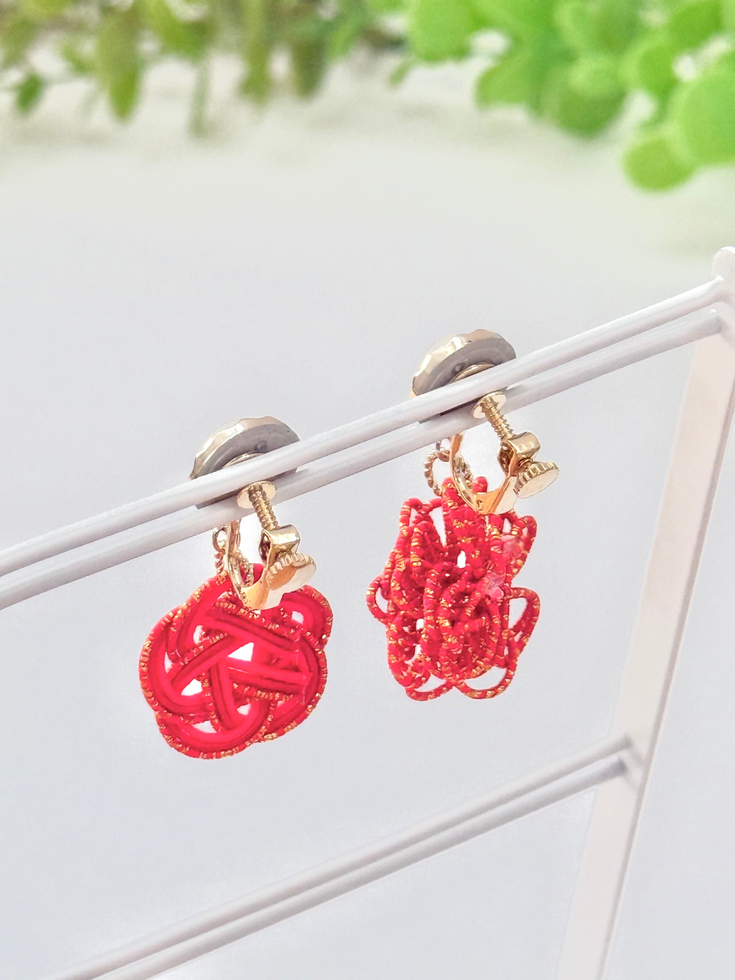 水引きアクセサリー・イヤリング・レッド【1点物】